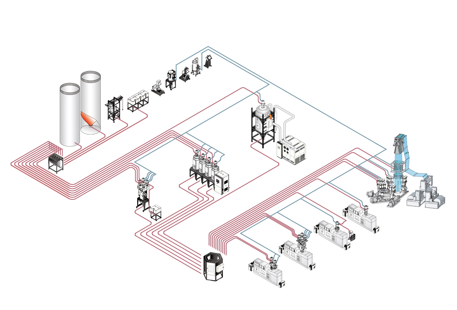 我们凭借多年的技术积累和工程管理经验,开发了包括中央供料系统、、中央冷水系统、冷热温控系统、除湿干燥系统、计量混合系统、粉碎回收系统、自动取出系统等在内的自动化智能系统方案。获得了客户的广泛好评和认可,被评为“广东省高新技术企业”。